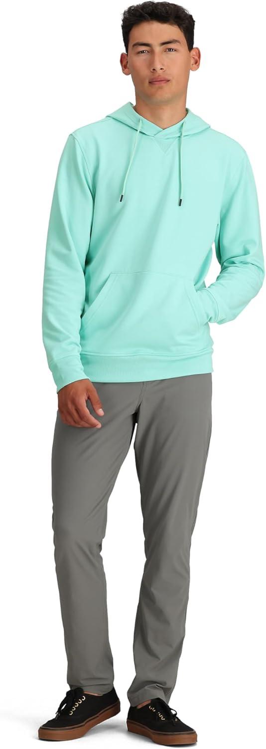 This casual hoodie combines trendy style with high-performance materials, offering comfort and versatility. Its classic design features a kangaroo pocket and 3-panel hood, while the blend of polyester, Tencel Lyocell, and spandex ensures breathability, quick-drying, and moisture-wicking. With a UPF 30 rating for sun protection and an incredibly soft feel, it's perfect for everyday wear and shoulder season adventures or cool nights outdoors, making it a wardrobe essential.
