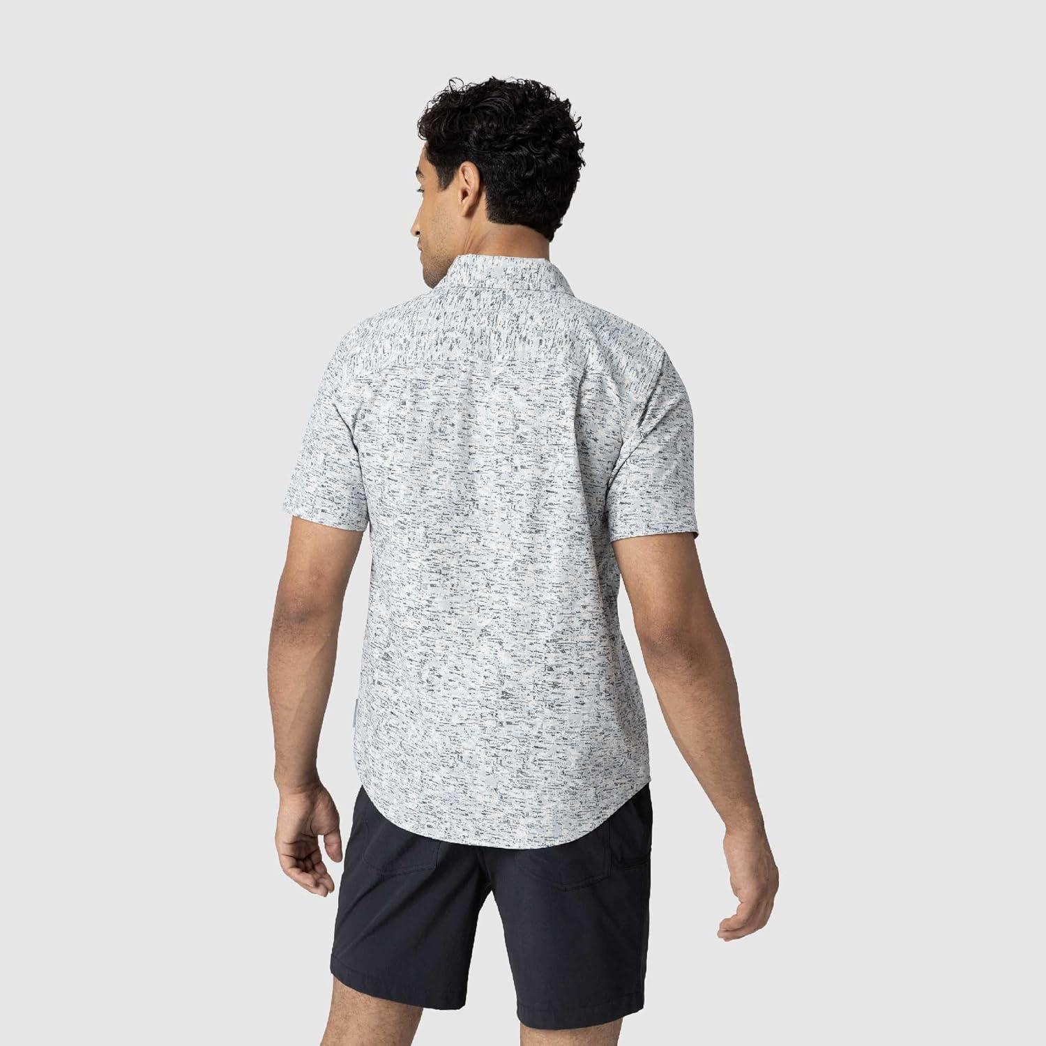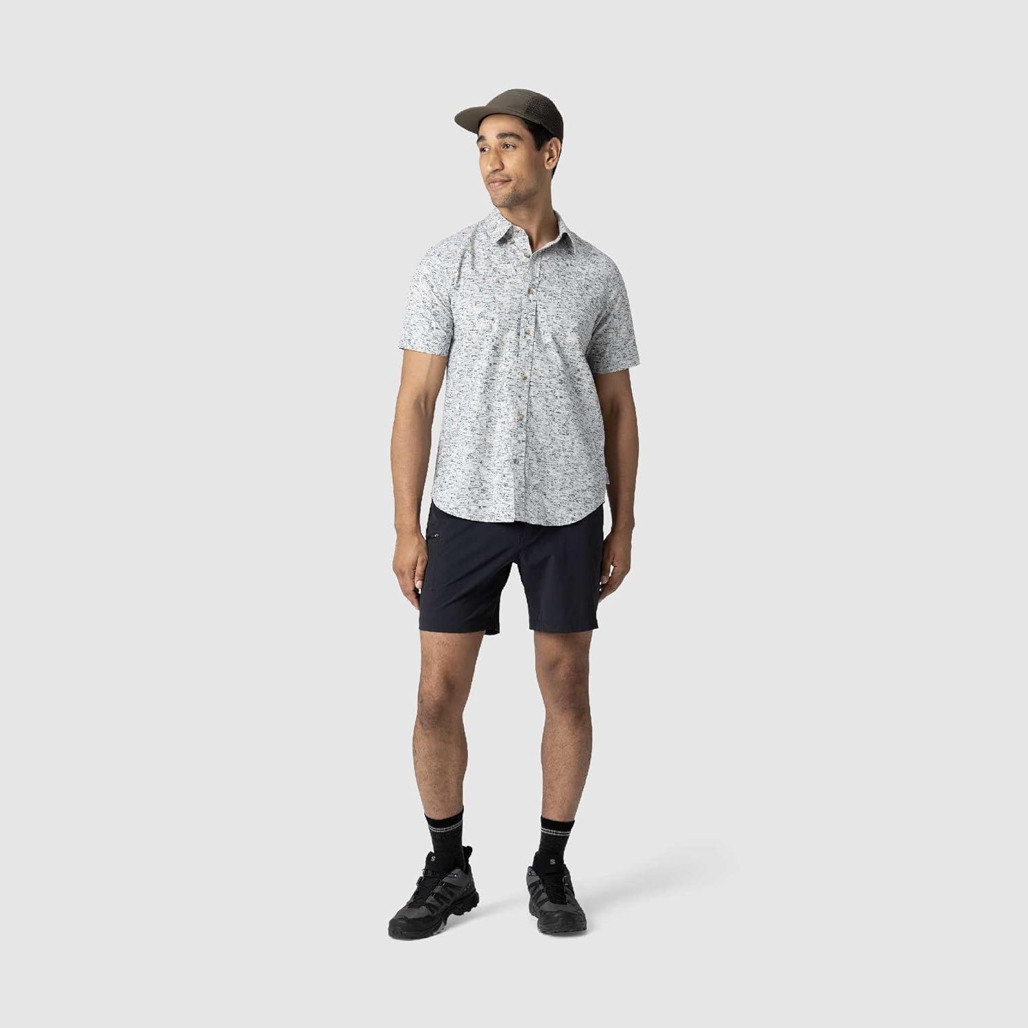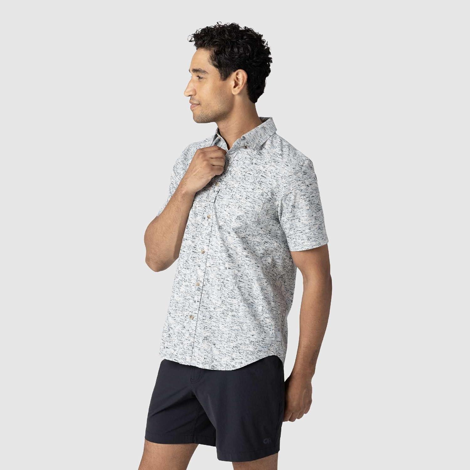 Outdoor Research Men’s Rooftop Short Sleeve Shirt – Button Down Shirt for Men(Oyster Traverse Print)
