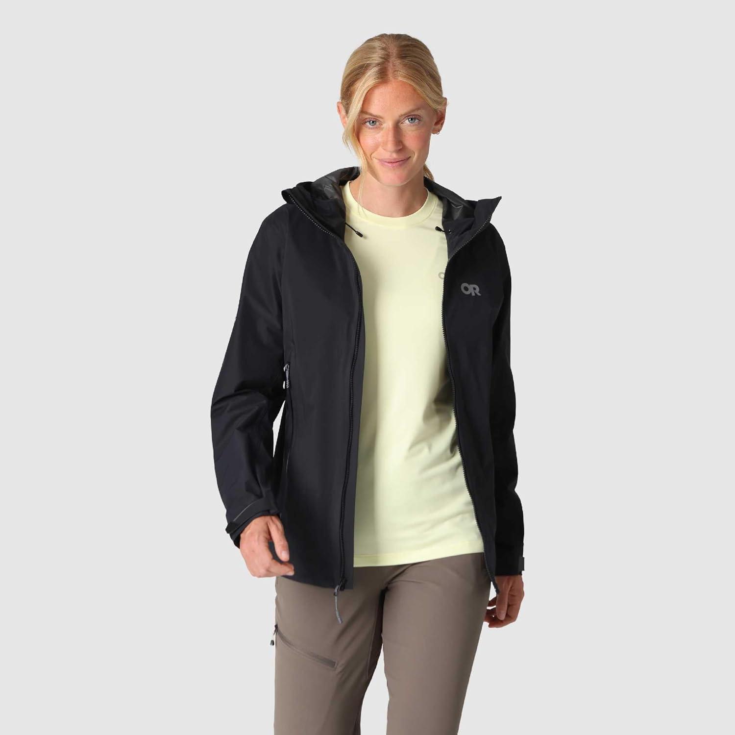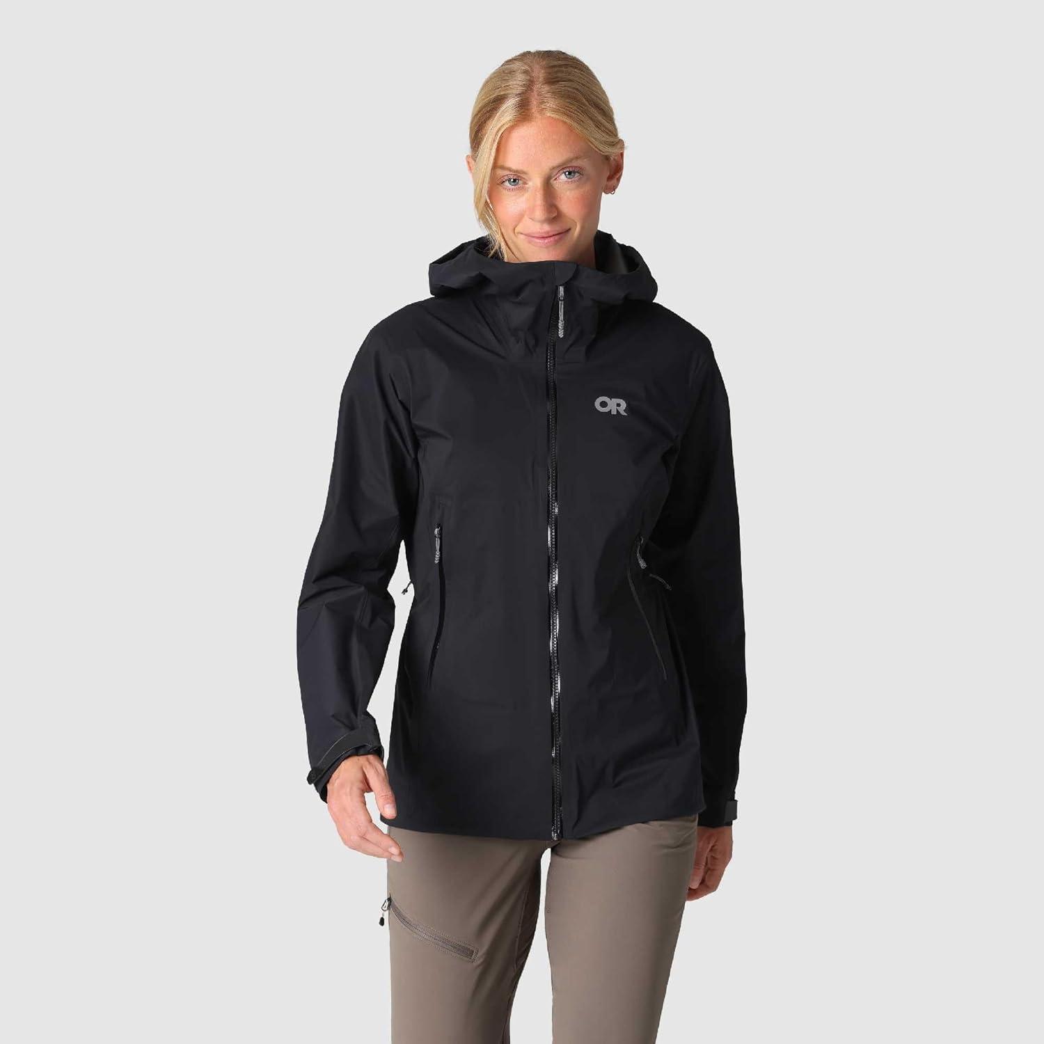 Outdoor Research Women’s SkyChaser Jacket | Lightweight Waterproof Mountaineering Shell, Pit Zips, Helmet Compatible Hood(Black)