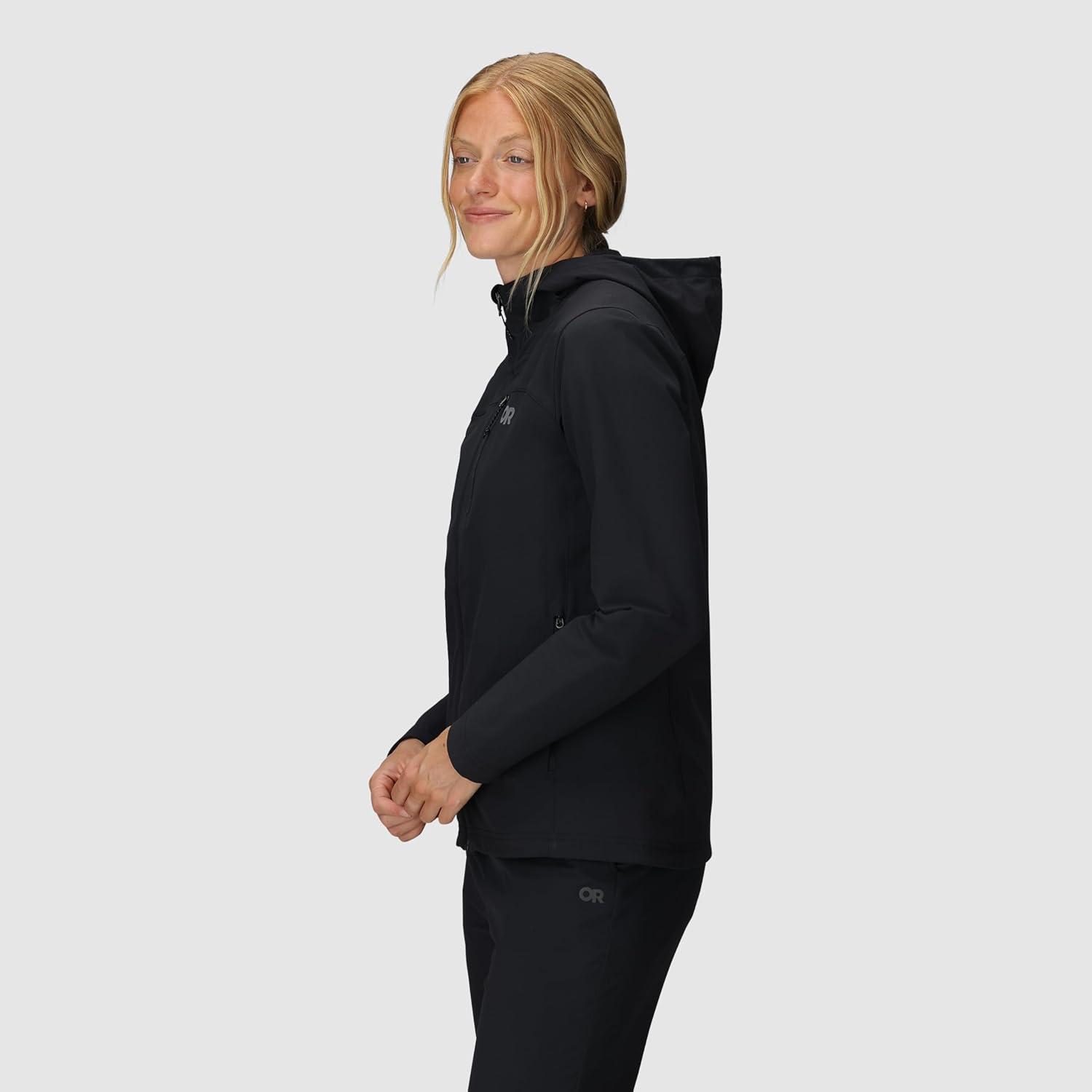 Outdoor Research Women’s Ultima Softshell Hoodie | Wind, Water & Abrasion Resistant, Brushed Inner, UPF 50+, Standard Fit(Black)